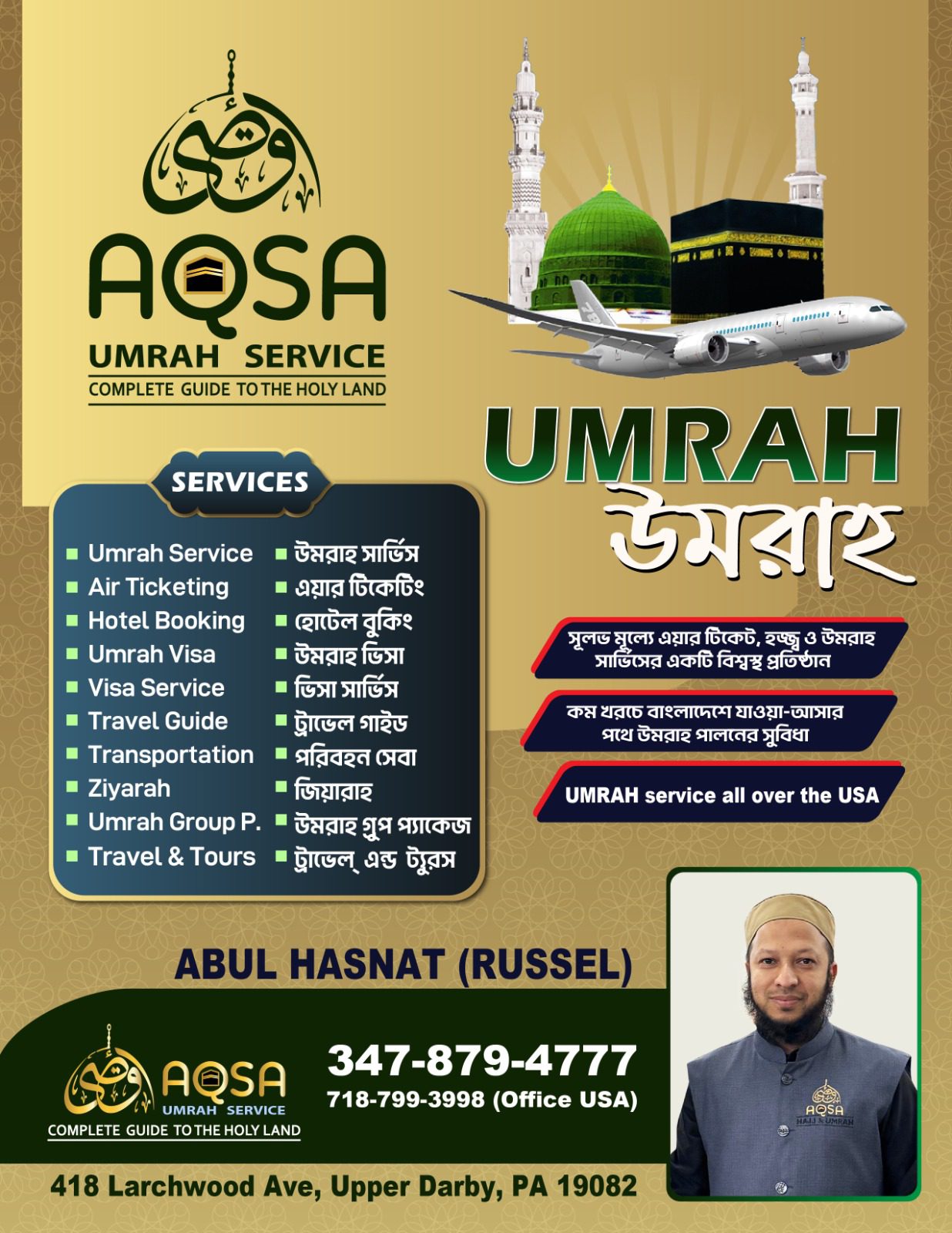 Discover exceptional Umrah services with Aqsa Umrah and Hajj Services, your trusted partner operating from Pennsylvania, USA. We specialize in creating personalized Umrah packages designed to meet the unique spiritual needs of pilgrims across the USA. Our dedicated team ensures every aspect of your Umrah travel, from visa processing to accommodation, is handled with care for a seamless journey. Explore our comprehensive Umrah packages and let our Pennsylvania-based experts guide your spiritual voyage.